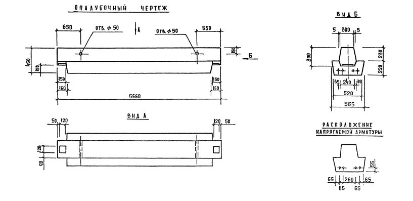РДП 4.57  Ригели (оснащённые одинаковыми с двух сторон полками, для опоры перекрытия с обеих сторон) Серия 1.020.1-7.