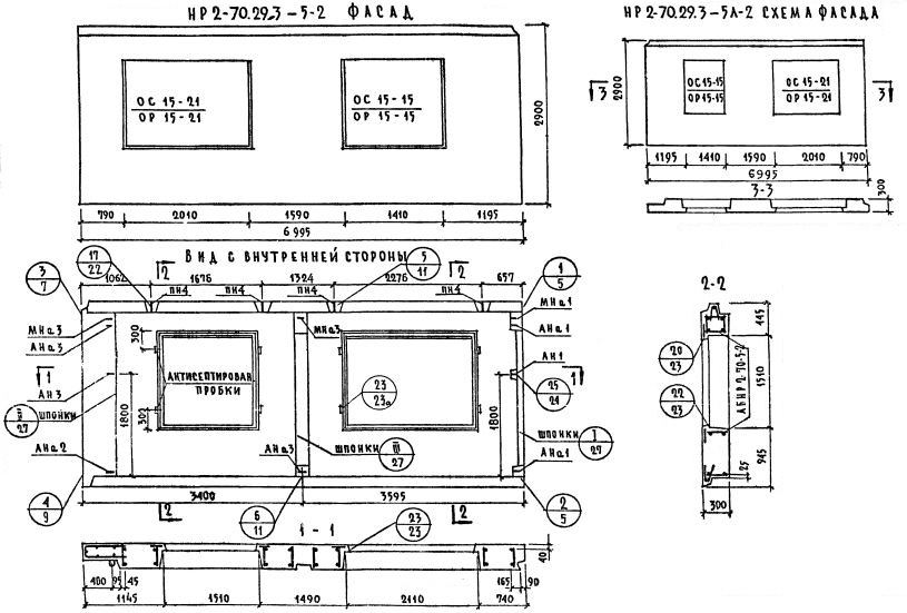 НР2-70.29.3-5л-2 Наружная стеновая панель рядовая по Серии 1.132-1.